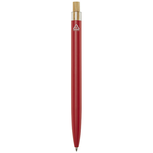 Kuličkové pero Nooshin je vyrobeno z recyklovaného hliníku, což vyžaduje méně energie než výroba hliníku z nerostných surovin. Snižuje také množství odpadu na skládkách a pomáhá šetřit přírodní zdroje s cílem snížit emise skleníkových plynů. Tlačítko je vyrobeno z bambusu. Barva inkoustu: Modrá. Délka psaní: 800 metrů. Rozměr hrotu: 1,00 mm.