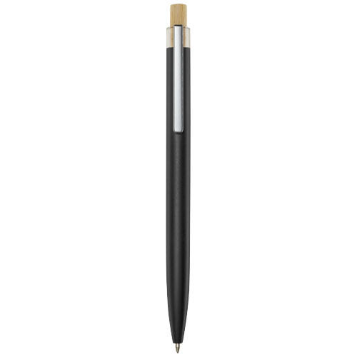 Kuličkové pero Nooshin je vyrobeno z recyklovaného hliníku, což vyžaduje méně energie než výroba hliníku z nerostných surovin. Snižuje také množství odpadu na skládkách a pomáhá šetřit přírodní zdroje s cílem snížit emise skleníkových plynů. Tlačítko je vyrobeno z bambusu. Barva inkoustu: Černá. Délka psaní: 800 metrů. Rozměr hrotu: 1,00 mm.