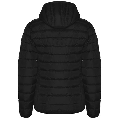 Dámská prošívaná bunda s péřovým efektem a s kapucí. Zipy s obráceným efektem s ochranou brady v odpovídajícím odstínu. Dvě boční kapsy na zip. Elastické lemování manžet, spodního lemu a kapuce v odpovídajícím odstínu. Podšívka v kontrastní barvě. Součástí balení je taštička na složení bundy. Lehký oděv s možností složení. Přiléhavý střih. Nepromokavá. Odolná vůči větru.