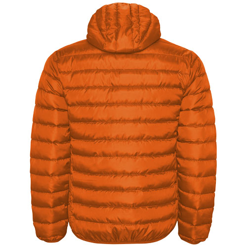 Pánská prošívaná bunda s péřovým efektem a s kapucí. Zipy s obráceným efektem s ochranou brady v odpovídajícím odstínu. Dvě boční kapsy na zip. Elastické lemování manžet, spodního lemu a kapuce v odpovídajícím odstínu. Podšívka v kontrastní barvě. Součástí balení je taštička na složení bundy. Lehký oděv s možností složení. Nepromokavá. Odolná vůči větru.