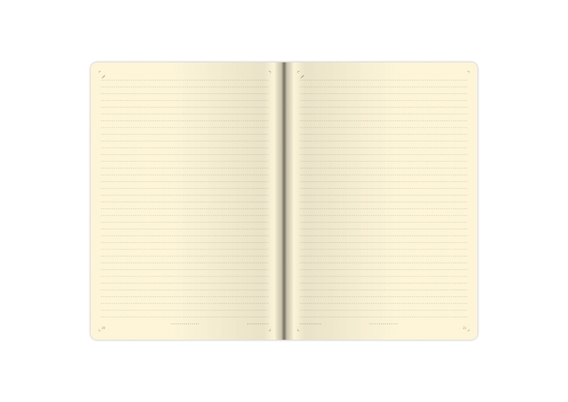 Desky jsou zhotoveny z matného materiálu na bázi zušlechtěného papíru, který je bez struktury a tím neruší vzhled samotného produktu. Diář je doplněn o kontrastní gumičku pro uzavření a poutko na propisku, kompletní design doplňuje obšití desek kontrastní nití. Praktická kapsička na zadních deskách, Doporučujeme ražbu s fólií nebo potisk. 192 stran, papír chamois, linky