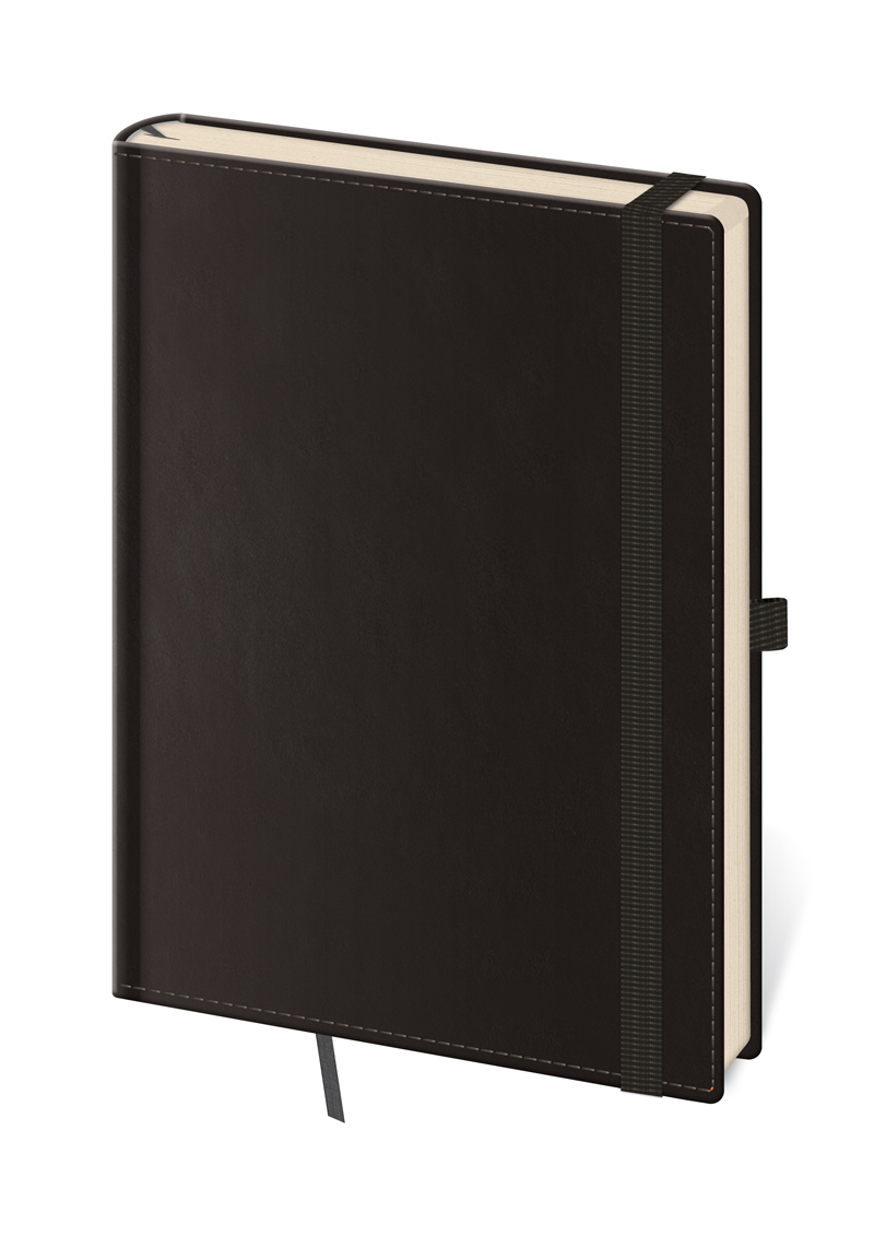 Desky jsou zhotoveny z matného materiálu na bázi zušlechtěného papíru, který je bez struktury a tím neruší vzhled samotného produktu. Diář je doplněn o kontrastní gumičku pro uzavření a poutko na propisku, kompletní design doplňuje obšití desek kontrastní nití. Praktická kapsička na zadních deskách, Doporučujeme ražbu s fólií nebo potisk. 192 stran, papír chamois, linky.