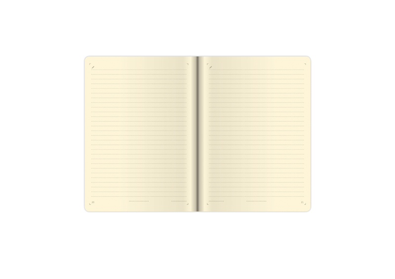 Desky jsou zhotoveny z matného materiálu na bázi zušlechtěného papíru, který je bez struktury a tím neruší vzhled samotného produktu. Diář je doplněn o kontrastní gumičku pro uzavření a poutko na propisku, kompletní design doplňuje obšití desek kontrastní nití. Praktická kapsička na zadních deskách, Doporučujeme ražbu s fólií nebo potisk. 192 stran, papír chamois, linky.