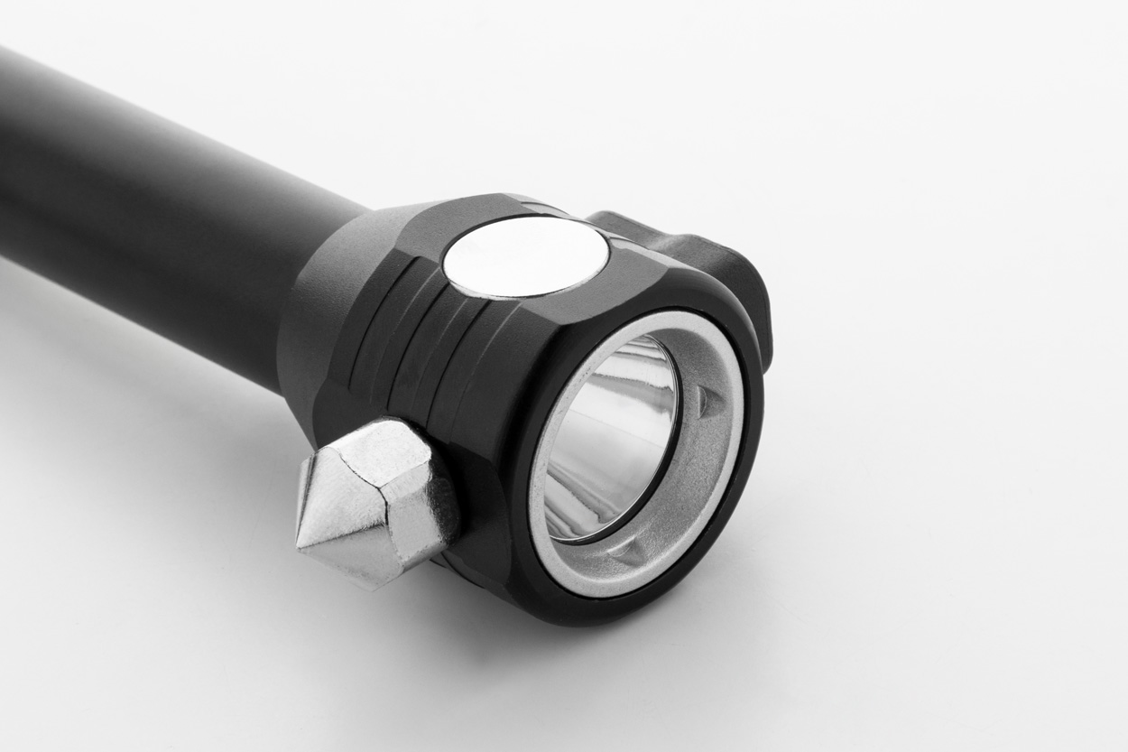Hliníková baterka 3v1 s nouzovým kladívkem a řezačkou bezpečnostních pásů. S vestavěnou USB dobíjecí baterií (500 mAh), magnetem a popruhem. S vysoce výkonným COB světlem u písma a COB světlometem na boku. Včetně USB nabíjecího kabelu.