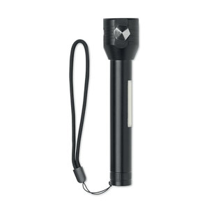 Hliníková svítilna 3v1 s nouzovým kladívkem a řezačem bezpečnostních pásů. Má boční a přední COB světlo. Včetně magnetu a popruhu na ruku. Vestavěná dobíjecí baterie 500 mAh.
