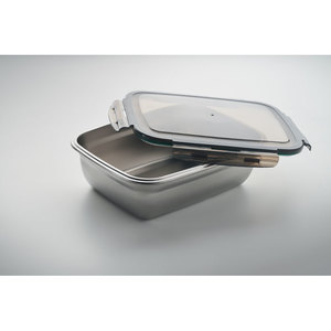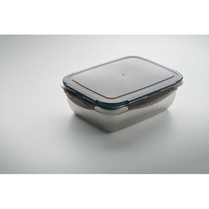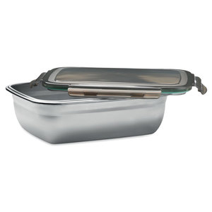 Krabička na jídlo z recyklované nerezové oceli s víčkem z recyklovaného PP. Zavírání na 4 strany. Objem: 1500 ml.