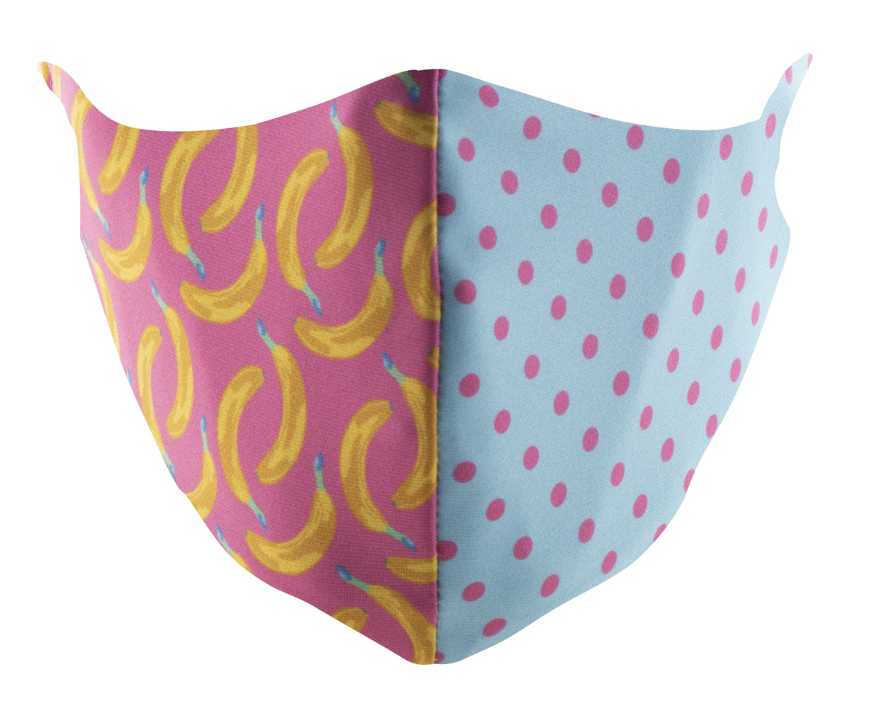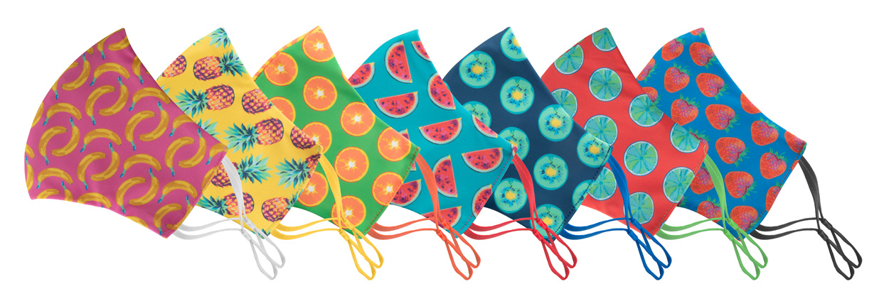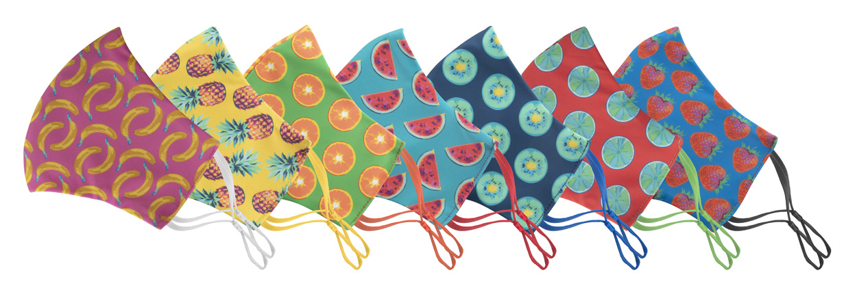 Na míru vyrobená, pratelná a opakovaně použitelná dvouvrstvá obličejová maska s nastavitelnými gumičkami za uši a s vlastním sublimačním tiskem pro dospělé. Vyrobeno ze 100% polyesteru (140 g/m2) a 100% bavlny (140 g/m²). Cena zahrnuje sublimační tisk, nezahrnuje tiskovou přípravu. Min. mn.: 50 ks.