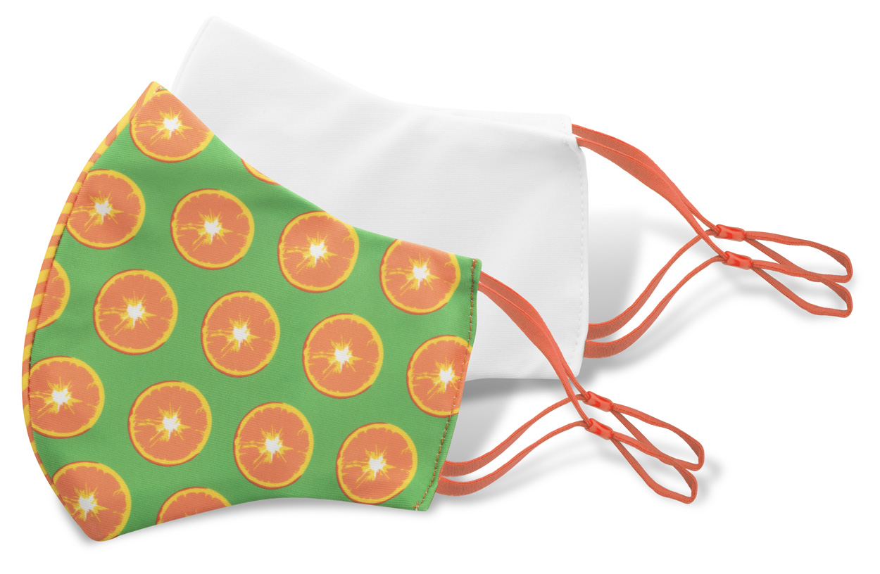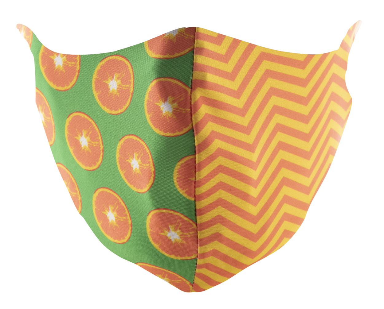 Na míru vyrobená, pratelná a opakovaně použitelná dvouvrstvá obličejová maska s nastavitelnými gumičkami za uši a s vlastním sublimačním tiskem pro dospělé. Vyrobeno ze 100% polyesteru (140 g/m2) a 100% bavlny (140 g/m²). Cena zahrnuje sublimační tisk, nezahrnuje tiskovou přípravu. Min. mn.: 50 ks.
