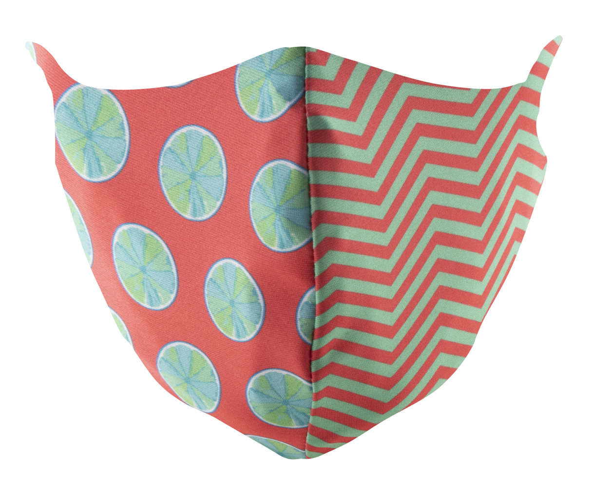 Na míru vyrobená, pratelná a opakovaně použitelná dvouvrstvá obličejová maska s nastavitelnými gumičkami za uši a s vlastním sublimačním tiskem pro dospělé. Vyrobeno ze 100% polyesteru (140 g/m2) a 100% bavlny (140 g/m²). Cena zahrnuje sublimační tisk, nezahrnuje tiskovou přípravu. Min. mn.: 50 ks.