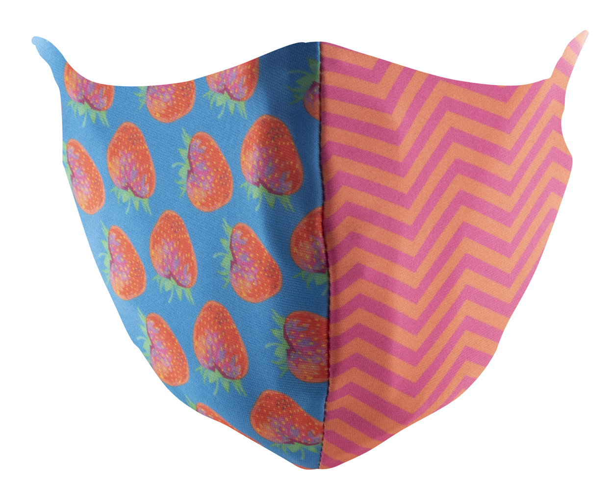 Na míru vyrobená, pratelná a opakovaně použitelná dvouvrstvá obličejová maska s nastavitelnými gumičkami za uši a s vlastním sublimačním tiskem pro dospělé. Vyrobeno ze 100% polyesteru (140 g/m2) a 100% bavlny (140 g/m²). Cena zahrnuje sublimační tisk, nezahrnuje tiskovou přípravu. Min. mn.: 50 ks.