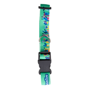 Na zakázku vyrobený polyesterový obojek pro psa s plastovou karabinou a kovovým kroužkem. Se sublimační tištěnou grafikou na obou stranách, cena nezahrnuje tiskovou přípravu. Min. mn.: 50 ks.