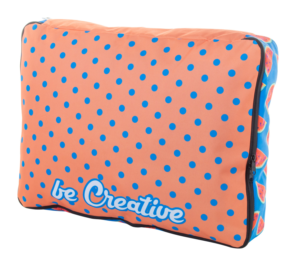 Na zakázku vyrobený organizér zavazadel na zip z polyesteru 600D RPET. S celoplošně tištěnou sublimační grafikou a výrazným štítkem RPET. MOQ: 50 ks.