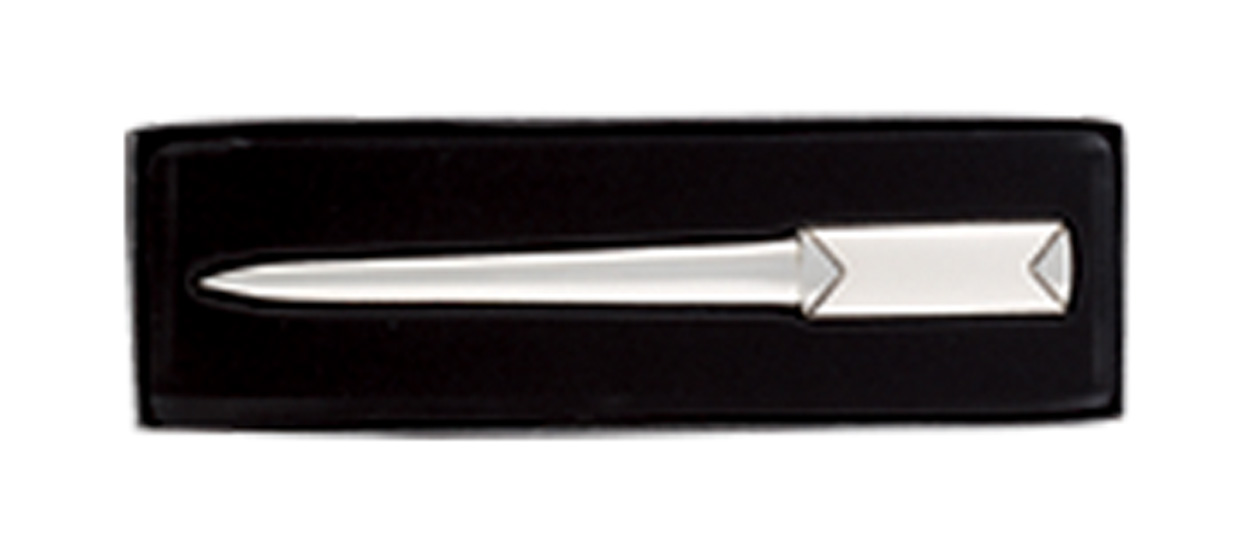 Kovový otvírač dopisů, v černé dárkové krabičce.