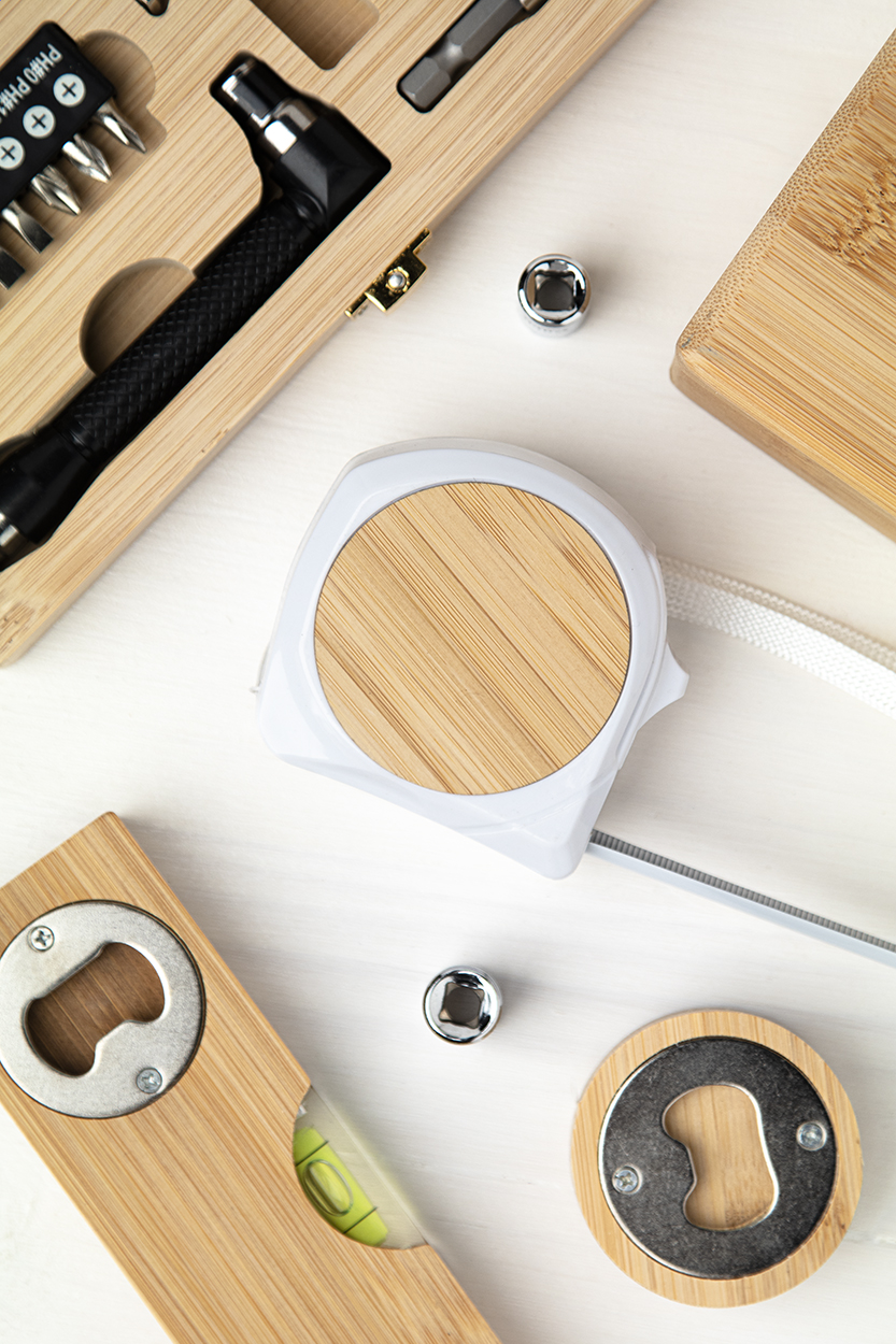 Kulatý bambusový otvírák na láhve se svinovacím metrem, 1m.