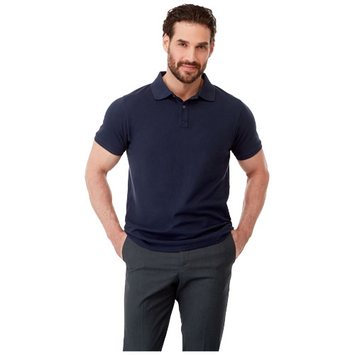 The Beryl short sleeve men's polo is made of 220 g/m² 70% cotton blended with 30% recycled polyester, making it a more sustainable option suitable for a variety of occasions and activities. The flat knit rib cuffs add sophistication and maintain the polo's shape.