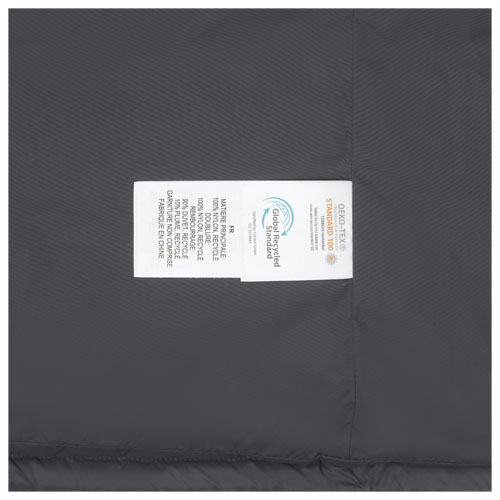Nylonová tkanina 380T, vodoodpudivá a impregnovaná. 100% GRS certifikovaný recyklovaný nylon, Padding/filling, Down insulation: Responsible Down Standard (RDS)90% Recyklované peří, 10% Recycled feathers, 115 g/m2