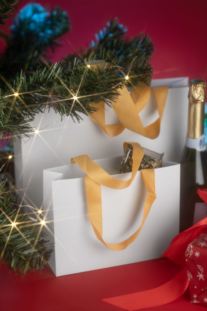 Velká papírová taška DUNA je elegantní a pevný obal ideální pro větší dárkové sady nebo prémiové produkty. Je vyroben ze silného a tuhého papíru, takže si zachovává svůj tvar i při použití těžšího obsahu. Široká ucha z textilní stuhy zajišťují pohodlnou manipulaci a podtrhují její luxusní charakter. Díky jednoduchému, klasickému designu je ideální pro firemní akce, galavečery nebo dárkové kampaně. Taška je k dispozici s logem značky.