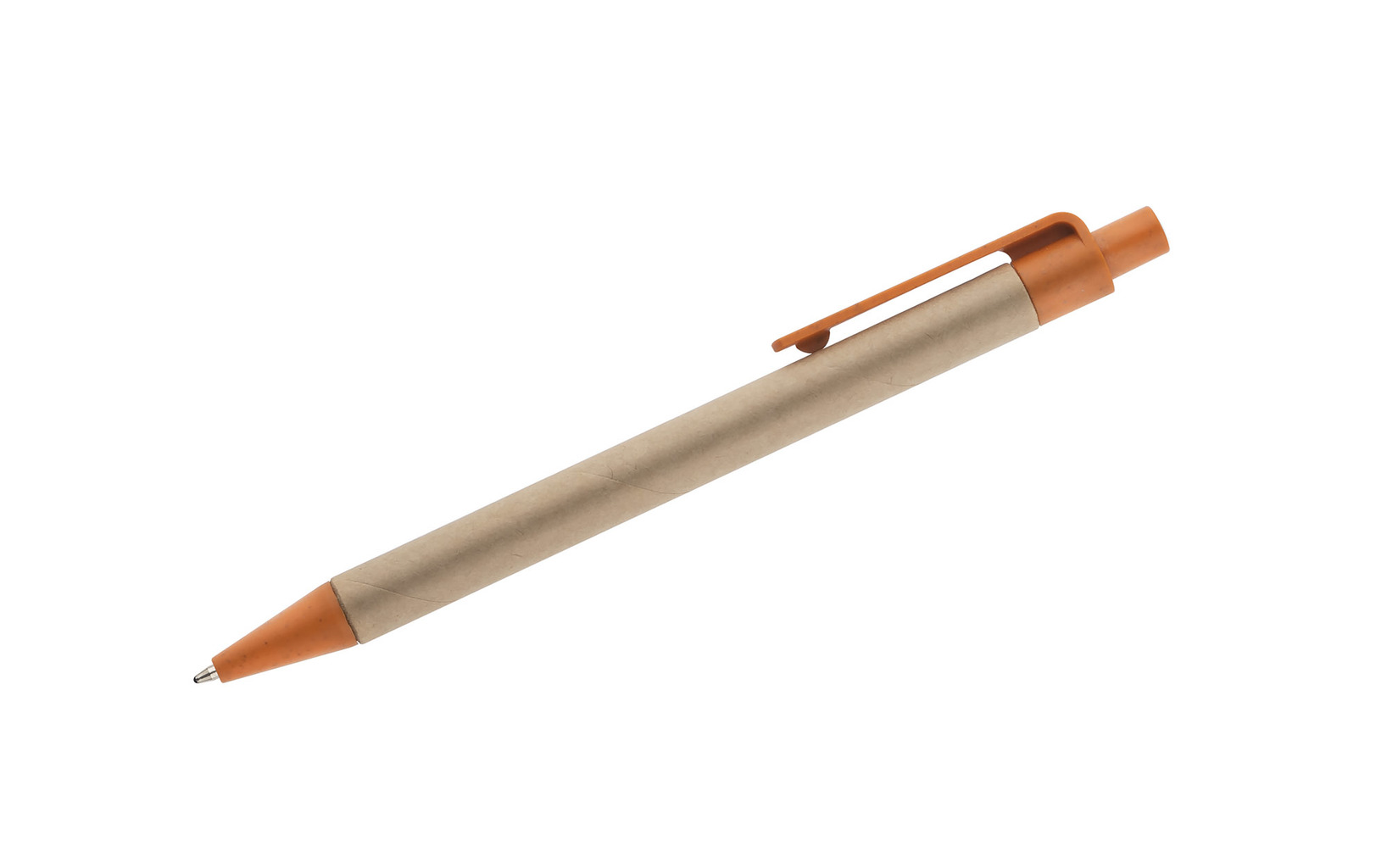 Kuličkové pero TIKO bylo vyrobeno s úmyslem znovu použít suroviny. Jeho tělo je vyrobeno z recyklovaného papíru a špičky jsou vyrobeny z plastu s příměsí přírodní slámy, což omezuje množství plastu potřebného pro výrobu. Jednoduchý, nadčasový vzor. Kuličkové pero. Náplň typu X20 modrá.