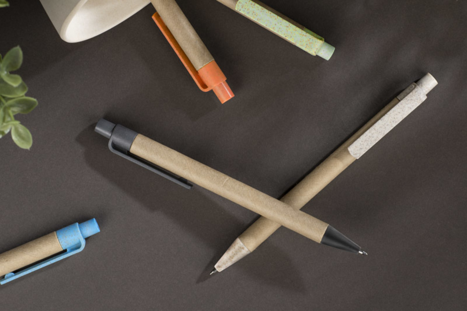 Kuličkové pero TIKO bylo vyrobeno s úmyslem znovu použít suroviny. Jeho tělo je vyrobeno z recyklovaného papíru a špičky jsou vyrobeny z plastu s příměsí přírodní slámy, což omezuje množství plastu potřebného pro výrobu. Jednoduchý, nadčasový vzor. Kuličkové pero. Náplň typu X20 modrá.