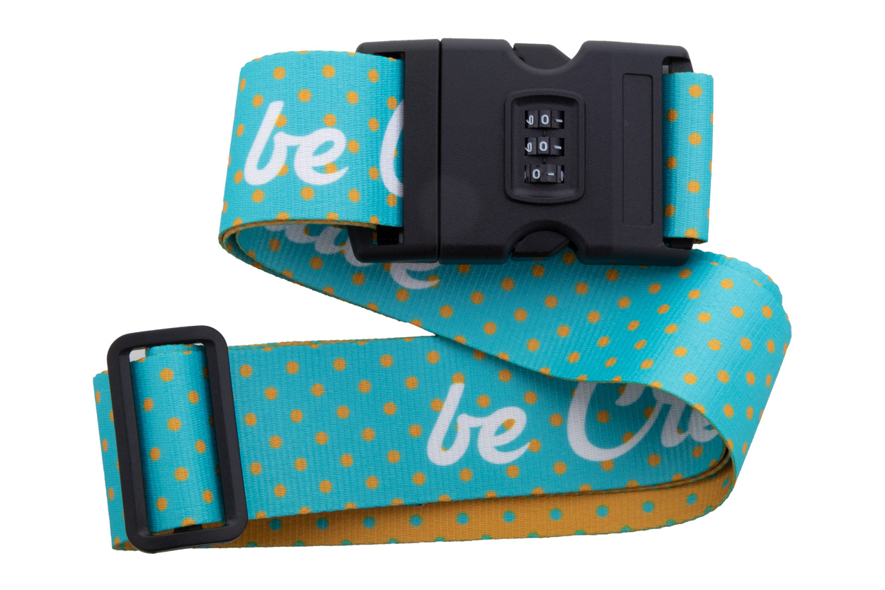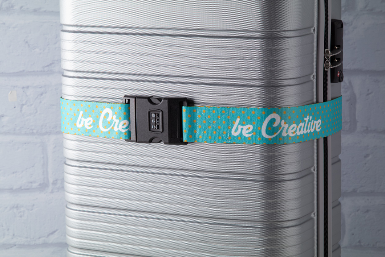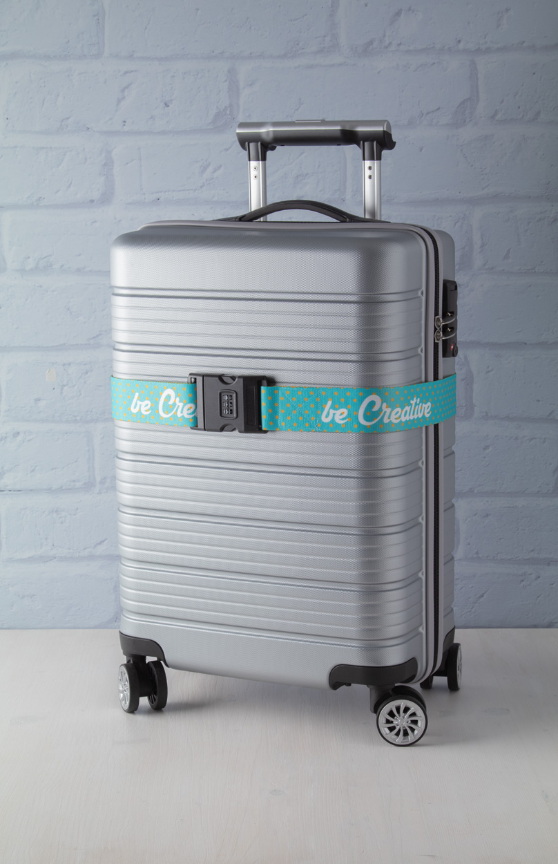 Polyesterový nastavitelný pásek na kufr na zakázku s 3 místným digitálním kódem. Cena zahrnuje sublimační potisk na obou stranách, nezahrnuje tiskovou přípravu. Min. mn.: 50 ks.