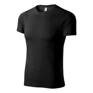 tubulární střih, lem průkrčníku z žebrového úpletu 1:1, vnitřní část průkrčníku začištěna páskou z vrchového materiálu, zpevnění ramenních švů páskou, odtrhávací etiketa