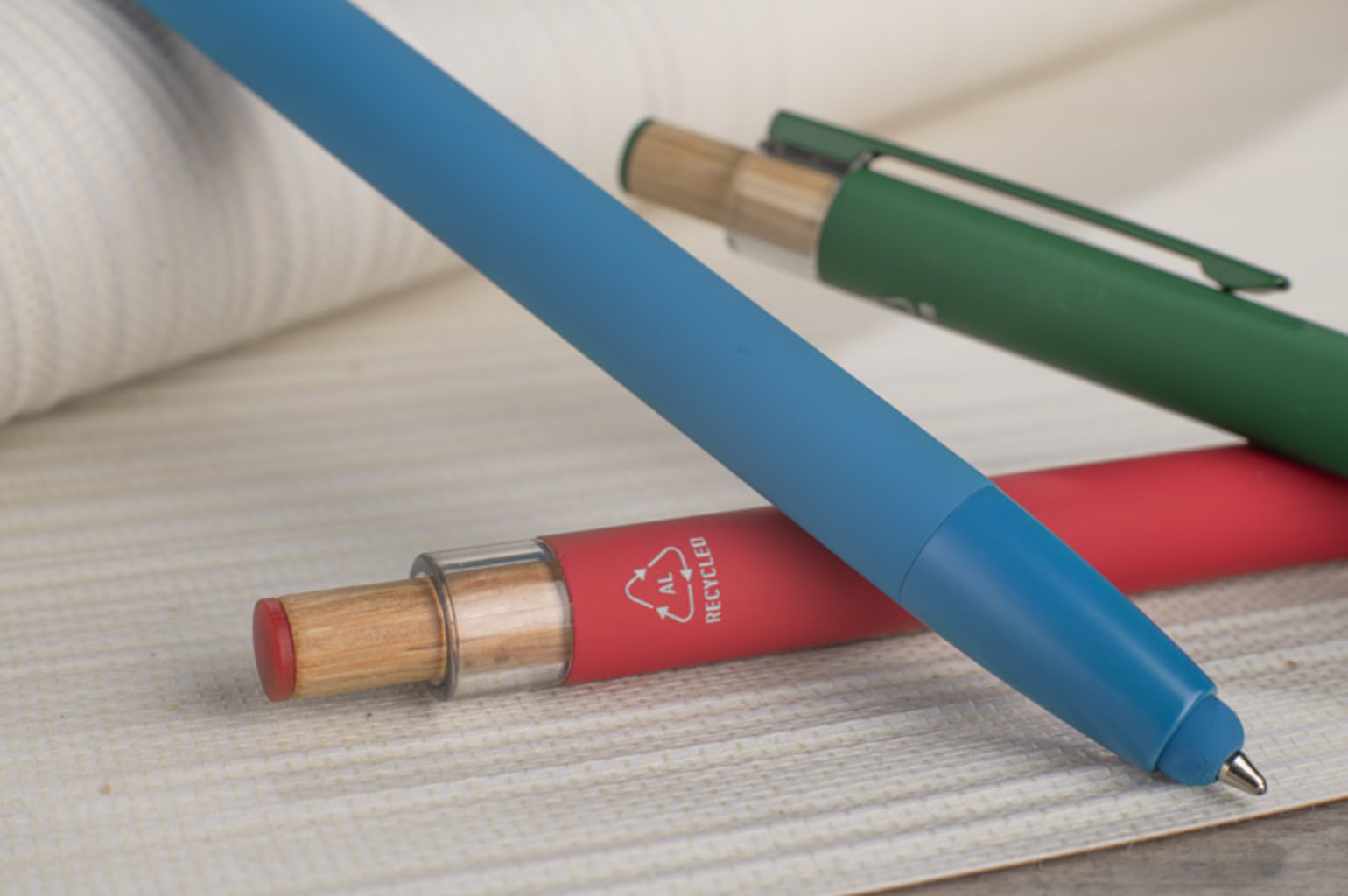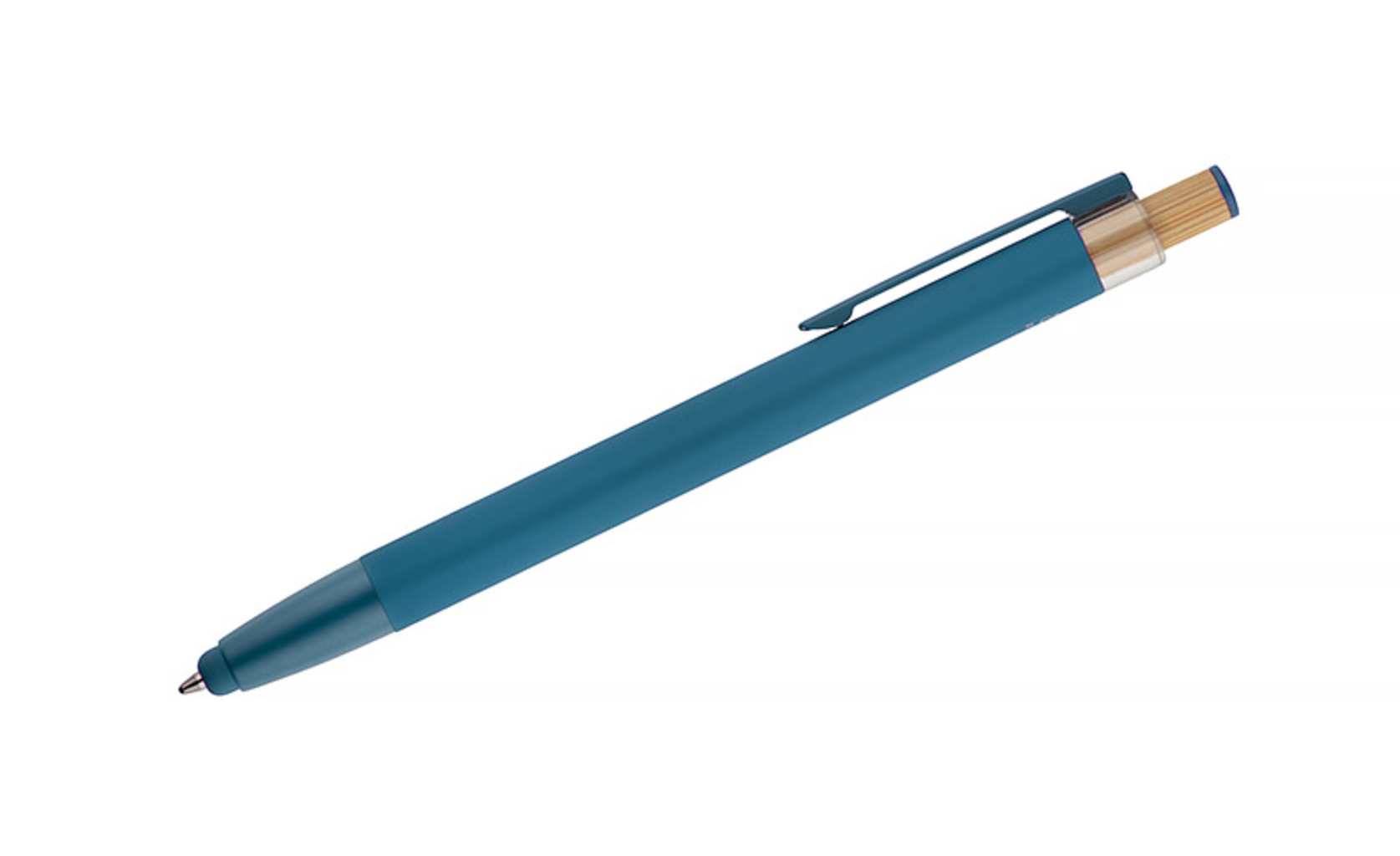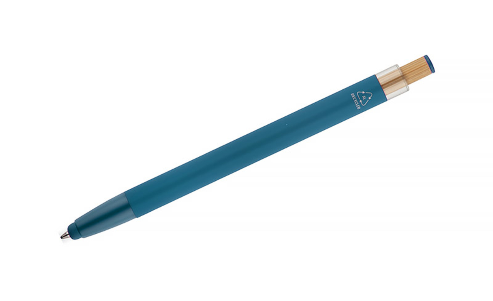 Kuličkové pero ALPEN v sobě spojuje moderní design a pohodlí při psaní. Je vyrobeno z recyklovaného hliníku s pogumovanou povrchovou úpravou soft touch a zajišťuje pohodlné každodenní používání. Je vybaveno funkcí dotykového pera pro dotykové obrazovky a kovovým klipem pro snadné připevnění k notebooku nebo do kapsy. Výrazné bambusové tlačítko dodává peru přirozený nádech a barevné detaily umocňují jeho moderní styl. Hrot typu G2 s tloušťkou čáry 1,0 mm zaručuje hladké psaní a vysokou odolnost.