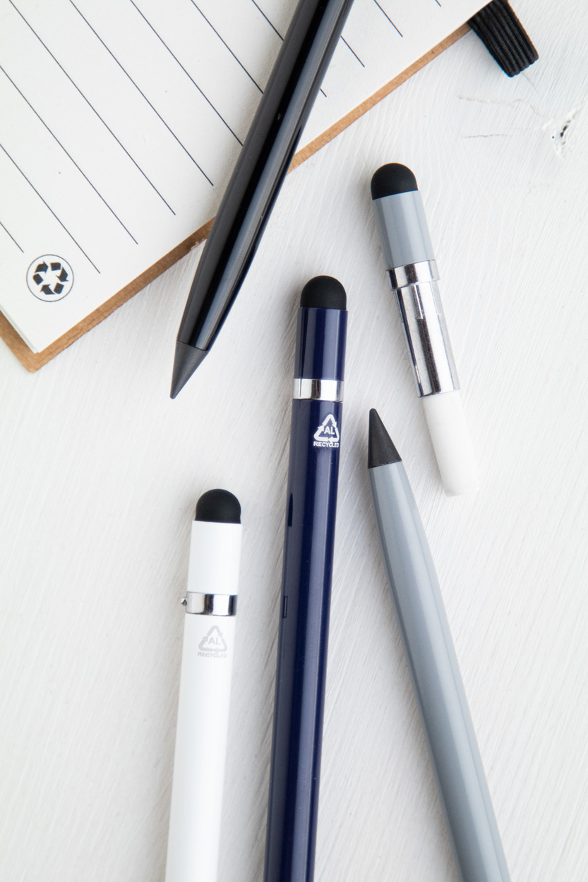 Pero bez inkoustu s dlouhou životností z recyklovaného hliníku s dotykovým perem a hrotem z kovové slitiny, který oxiduje papír. Toto pero píše podobně jako tužka a je také stíratelné. Včetně gumy na vnitřní straně dotykového stylusu.