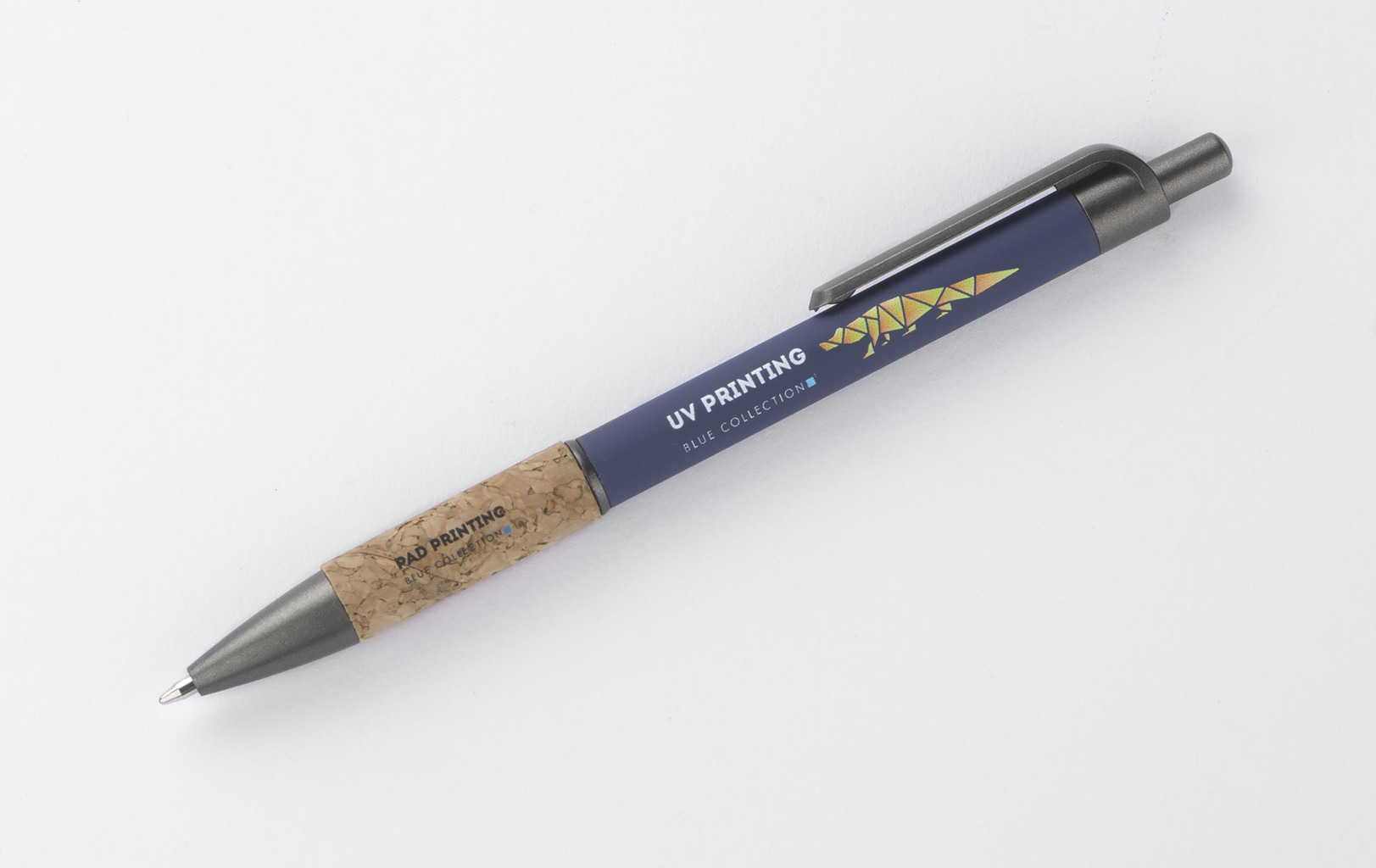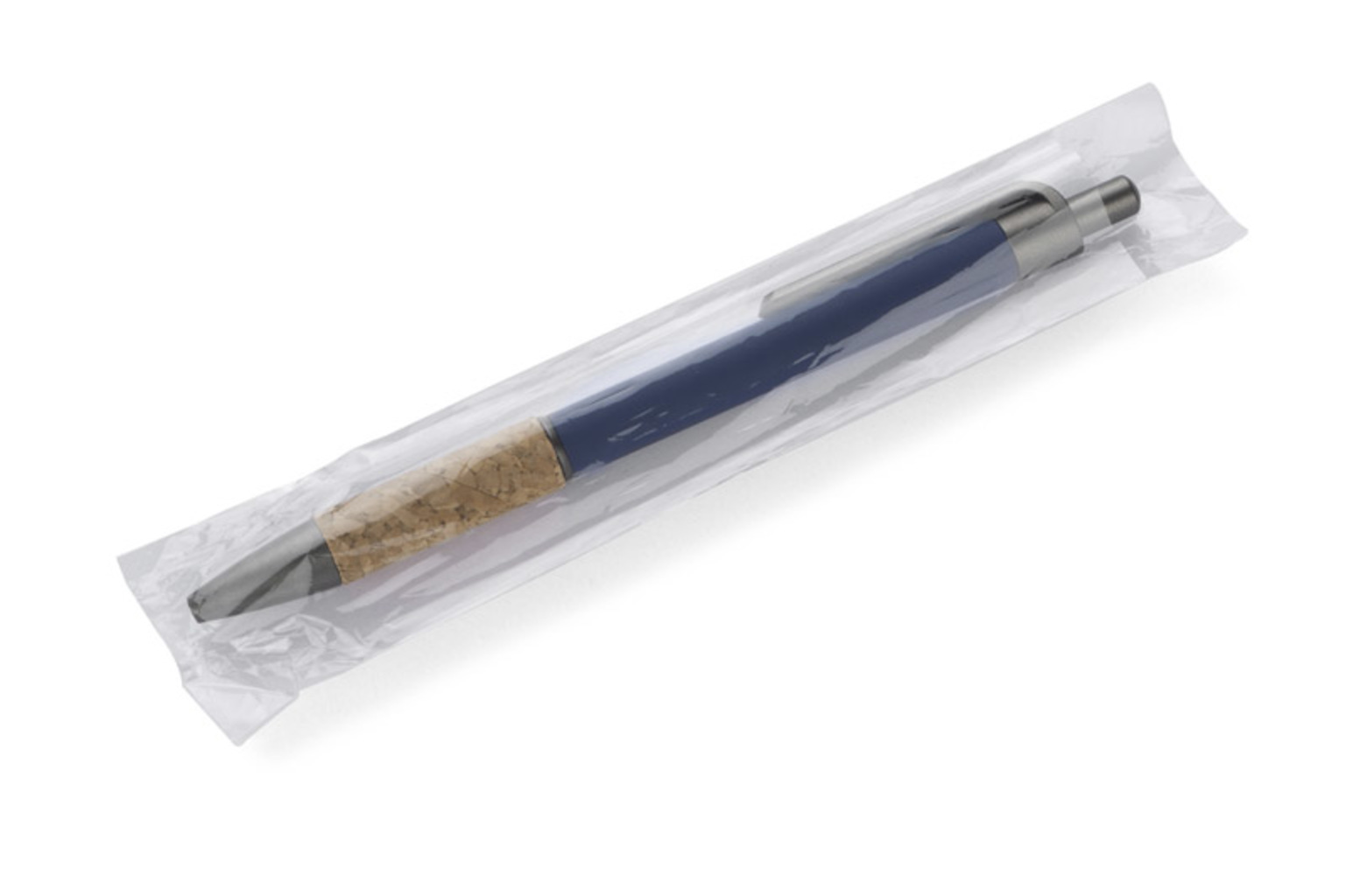 Kuličkové pero KUBOD je klasický model s jednoduchým, elegantním tvarem, který je ideální pro tvorbu značky. Hliníkové tělo je potaženo matnou vrstvou soft-touch pro větší pohodlí při používání. Přírodní korek v oblasti úchopu přitahuje pozornost a odlišuje výrobek od standardních modelů. Kovové plastové akcenty dodávají moderní nádech. Pero má automatický mechanismus a dodává se s modrou náplní typu X20 (vyměnitelná, není k dispozici v naší nabídce).