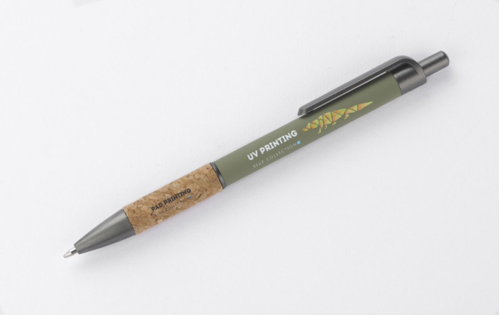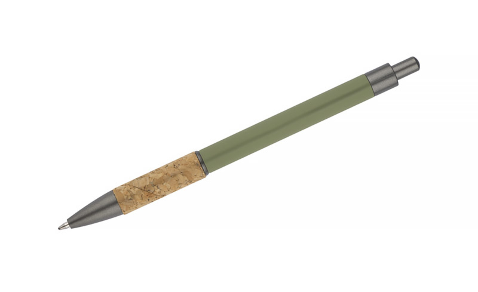 Kuličkové pero KUBOD je klasický model s jednoduchým, elegantním tvarem, který je ideální pro tvorbu značky. Hliníkové tělo je potaženo matnou vrstvou soft-touch pro větší pohodlí při používání. Přírodní korek v oblasti úchopu přitahuje pozornost a odlišuje výrobek od standardních modelů. Kovové plastové akcenty dodávají moderní nádech. Pero má automatický mechanismus a dodává se s modrou náplní typu X20 (vyměnitelná, není k dispozici v naší nabídce).