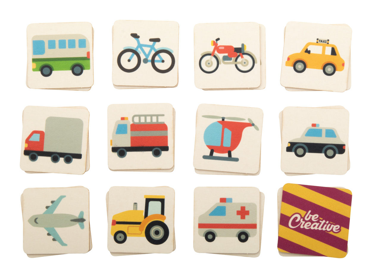 Papírové pexeso s tematickými motivy v papírové krabici na míru. 24 motivů (40x40 mm). Cena zahrnuje plnobarevný potisk na zadní straně všech dlaždic a plně barevně potištěnou krabici. MOQ: 100 ks.