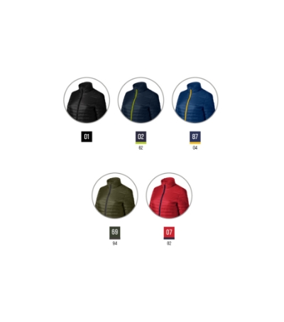 sbalitelná do vnitřní kapsy, lehký hřejivý materiál členěný prošíváním, střih tvarovaný bočními díly, celopropínací kostěný zip s krytkou brady, kapsy s kostěným zipem, vnitřní kapsa na suchý zip, vstup pro branding v bočním švu podšívky, lemování elastickým proužkem