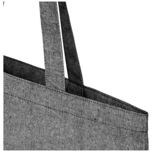 Nákupní taška vyrobená ze směsi recyklované bavlny a polyesteru o hmotnosti 150 g/m². Tato taška se snadno složí, aby se vešla do malého prostoru, a je dokonalým společníkem pro různé aktivity, jako je nakupování potravin, jednodenní výlety nebo řemeslné projekty. Recyklovaná bavlna pochází z výrobního odpadu textilních továren, vznikajícího během procesu řezání. Podobné barvy jsou míchány dohromady, takže další barvení není nutné. Vzhledem k povaze recyklované bavlny může dojít k velmi mírným barevným odchylkám. Tato vlastnost výrazně přispívá k autentičtějšímu vzhledu. Každá taška je také dodávána s indikátorem Aware™. Tato inovativní funkce umožňuje uživatelům sledovat původ a cestu jejich položky prostřednictvím QR kódu, čímž zvyšuje transparentnost v dodavatelském řetězci a podporuje pevnější propojení mezi produktem a jeho výrobním procesem. Nosnost do 5 kg. Délka rukojeti: 31 cm.