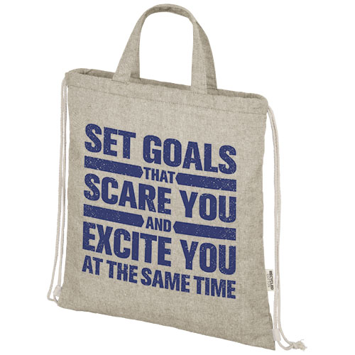 Šňůrkový batoh vyrobený ze směsi recyklované bavlny a polyesteru o gramáži 150 g/m². Velký hlavní oddíl uzavíratelný bavlněnou šňůrkou v přírodní barvě. Recyklovaná bavlna pochází z výrobního odpadu textilních továren, vznikajícího během procesu řezání. Podobné barvy jsou míchány dohromady, takže další barvení není nutné. Vzhledem k povaze recyklované bavlny může dojít k velmi mírným barevným odchylkám. Tato vlastnost výrazně přispívá k autentičtějšímu vzhledu. Každý batoh je také dodáván s indikátorem Aware™. Tato inovativní funkce umožňuje uživatelům sledovat původ a cestu jejich položky prostřednictvím QR kódu, čímž zvyšuje transparentnost v dodavatelském řetězci a podporuje pevnější propojení mezi produktem a jeho výrobním procesem. Nosnost do 5 kg. Délka rukojeti: 14 cm.
