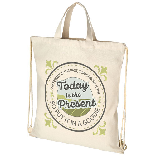 Batoh ze směsi recyklované bavlny a polyesteru 210 g/m². Recyklovaná bavlna pochází z výrobního odpadu textilních továren, vznikajícího během procesu řezání. Velká hlavní přihrádka s bavlněným šňůrkovým uzávěrem. Obsahuje dva úchyty s výškou 14 cm. Nosnost do 5 kg.