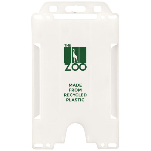 Pouzdro na karty na výšku vyrobené z recyklovaného plastu. Ideální pro výstavy, pracoviště a networkingové akce. Vhodné pro standardní vizitku a průkazky velikosti kreditní karty. Vzhledem k povaze recyklovaného plastu se barevné odstíny mohou mírně lišit a mohou se na nich vyskytovat barevné skvrny. Vyrobeno ve Spojeném království.