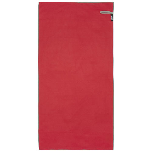Sportovní ručník Pieter velmi dobře saje, je lehký, rychle schne a tkanina je odolná a extrémně měkká. Když je ručník složený a zajištěný elastickým páskem, je zmenšen na malou velikost, díky čemuž je vhodný pro nošení do posilovny, na koupaliště nebo na výlety nebo kempování. Ručník má rozměr 50 × 100 cm a je vyroben z 90% GRS recyklovaného polyesteru a 10% nylonu a lze jej prát v pračce na 40 °C. Dodáváno s úložným sáčkem (17 × 13 cm) vyrobeným z recyklovaného PET plastu, který poskytuje skvělou plochu pro tisk loga.