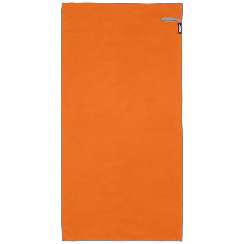 Sportovní ručník Pieter velmi dobře saje, je lehký, rychle schne a tkanina je odolná a extrémně měkká. Když je ručník složený a zajištěný elastickým páskem, je zmenšen na malou velikost, díky čemuž je vhodný pro nošení do posilovny, na koupaliště nebo na výlety nebo kempování. Ručník má rozměr 50 × 100 cm a je vyroben z 90% GRS recyklovaného polyesteru a 10% nylonu a lze jej prát v pračce na 40 °C. Dodáváno s úložným sáčkem (17 × 13 cm) vyrobeným z recyklovaného PET plastu, který poskytuje skvělou plochu pro tisk loga.