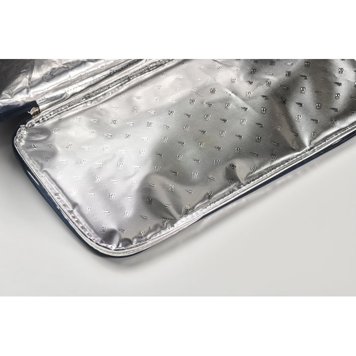 Pikniková chladicí taška z polyesteru 600D RPET pro 2 osoby s přední kapsou na zip, včetně příborů z nerezové oceli, 2 talířů z PS, 2 sklenic z PS a 2 bavlněných ubrousků. Objem 18 l.