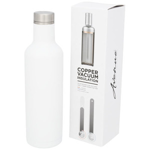 Udržujte své nápoje horké po 12 hodin nebo studené po 48 hodin s Pinto termoskou s měděnou izolací. Dvojstěnná láhev vyrobená z nerezavějící oceli třídy 18/8 s vakuovou izolací a měděnými vnitřními stěnami zaručí, že váš nápoj zůstane horký nebo ledově studený podle vašich potřeb. Vyznačuje se nástřikem práškového laku na vnější straně. Objem je 750 ml. Prezentováno v dárkové krabici Avenue.
