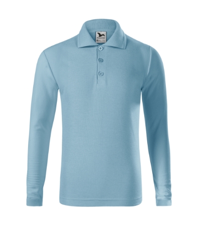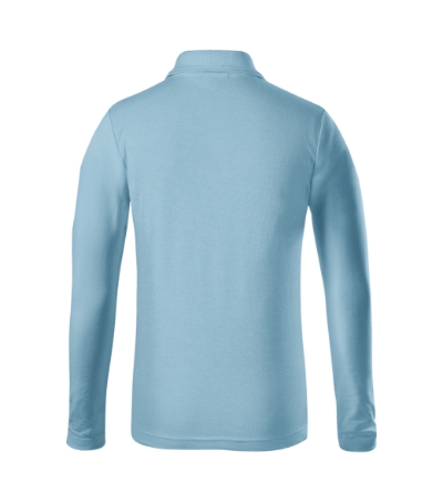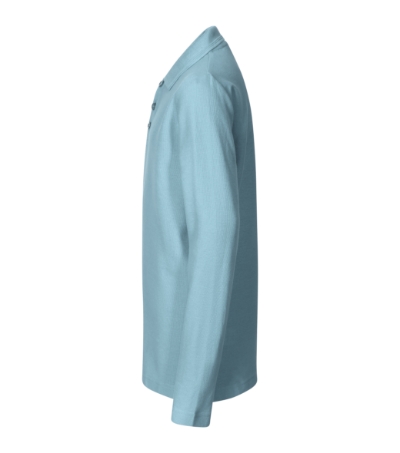 střih s bočními švy, límeček s dvojitým reliéfním proužkem z žebrového úpletu 1:1, léga s 3 knoflíčky v barvě materiálu, vnitřní průkrčník začištěn páskou z vrchového materiálu, zpevnění ramenních švů páskou, dlouhé rukávy