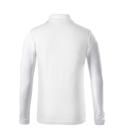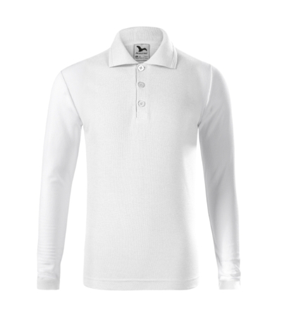 střih s bočními švy, límeček s dvojitým reliéfním proužkem z žebrového úpletu 1:1, léga s 3 knoflíčky v barvě materiálu, vnitřní průkrčník začištěn páskou z vrchového materiálu, zpevnění ramenních švů páskou, dlouhé rukávy