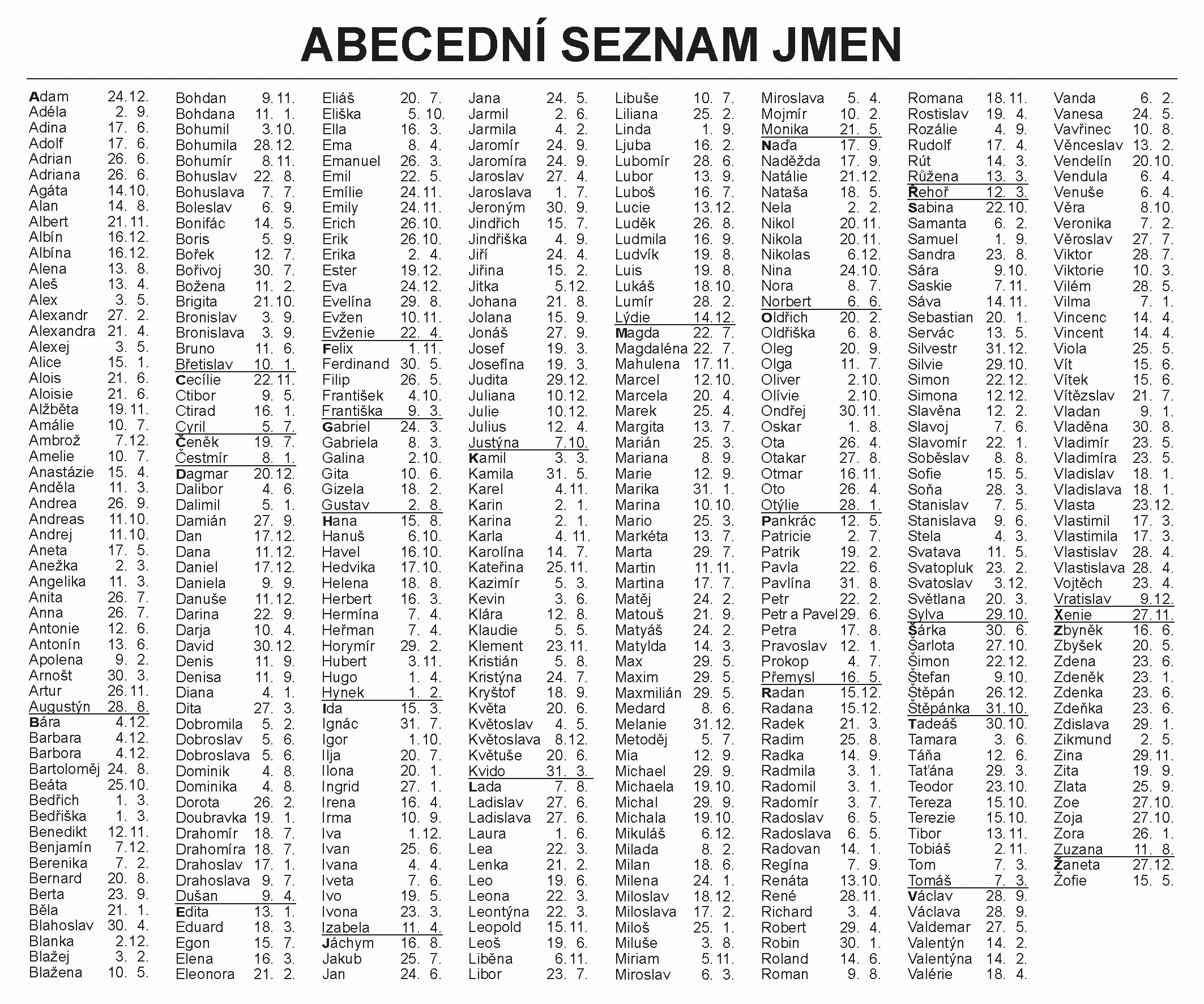 | Barva a materiál: | Papír: ofset, 140 g/m2 Přední strana - plánovací kalendář Zadní strana - abecední seznam jmen | ||||||||||||