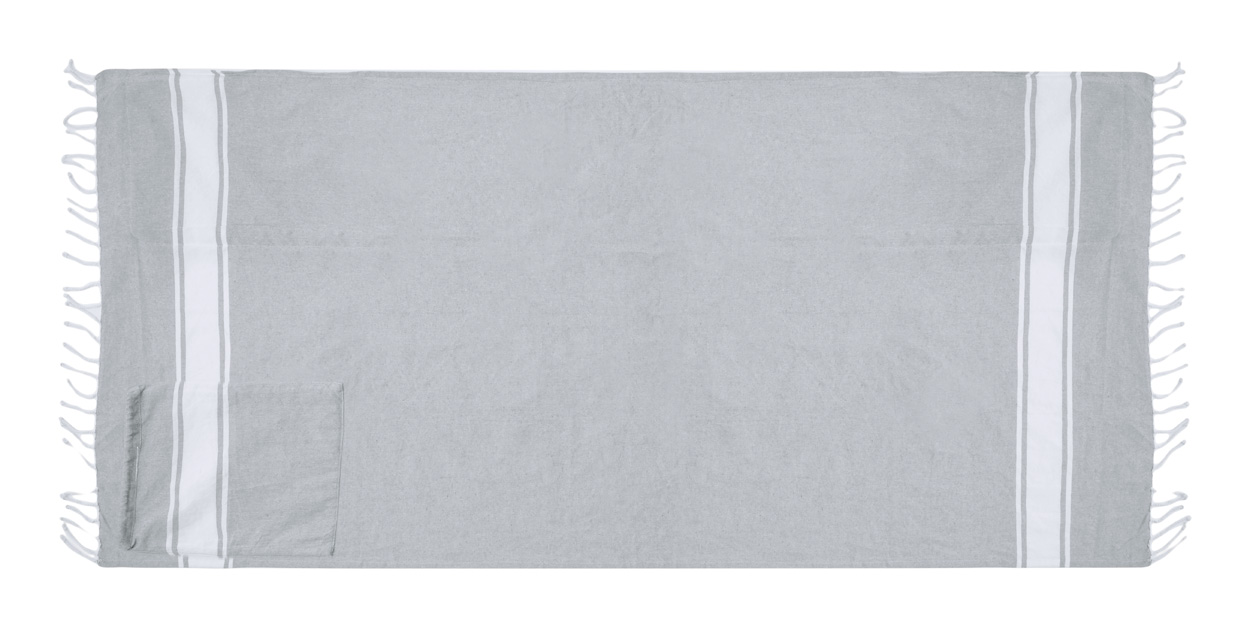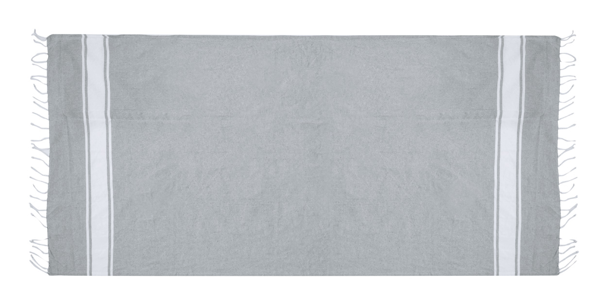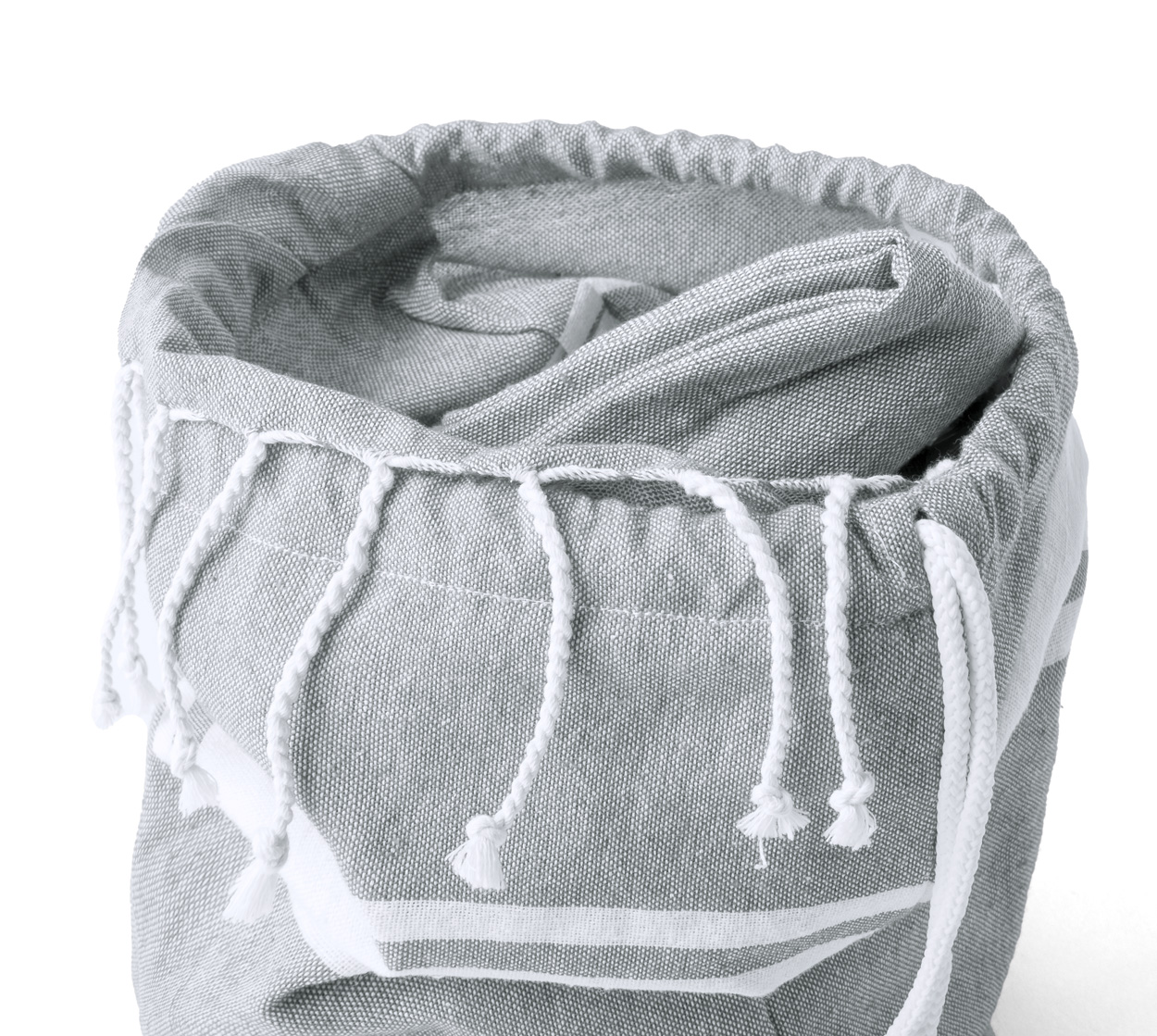 Plážová osuška z recyklované bavlny, dvoubarevná pareo, s odpovídající taškou se stahovací šňůrkou. 100% recyklovaná bavlna, 170 g/m².