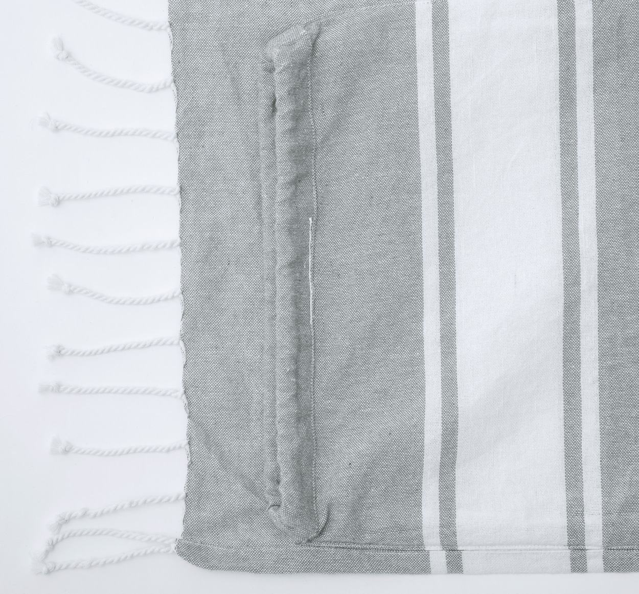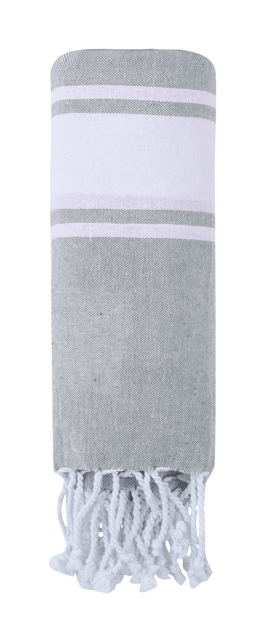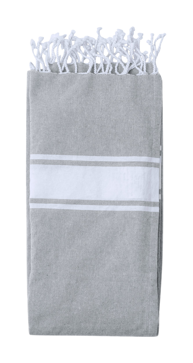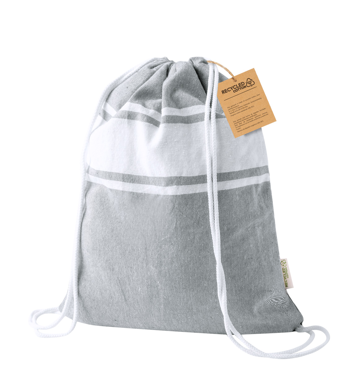 Plážová osuška z recyklované bavlny, dvoubarevná pareo, s odpovídající taškou se stahovací šňůrkou. 100% recyklovaná bavlna, 170 g/m².