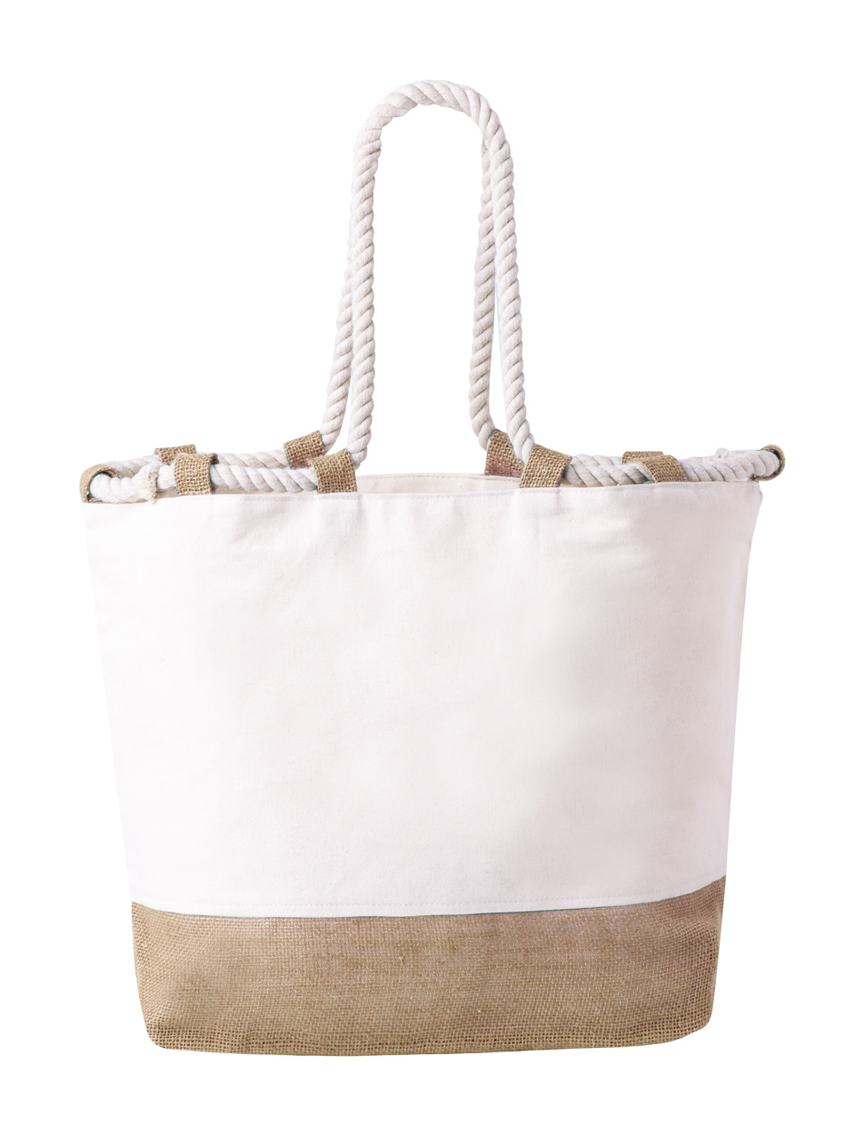 Dvoubarevná plážová taška z juty a bavlny s uchy z pletené šňůry, 280 g/m².