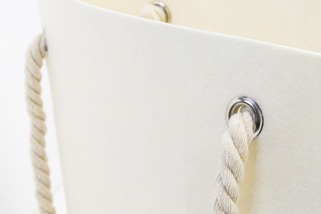 Plážová nebo nákupní taška z RPET s bavlněnými šňůrkami a spodním klínkem. S výrazným štítkem RPET.