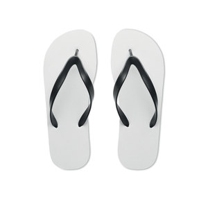 Plážové žabky pro sublimaci s PVC páskami. Podešev z gumy s polyesterovou vrchní látkou. Velikost 42-44. Položku lze objednat pouze potištěnou.