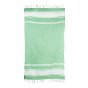 Dvoubarevný pruhovaný plážový ručník pareo ze 70% bavlny a 30% polyesteru. 210 g/m².