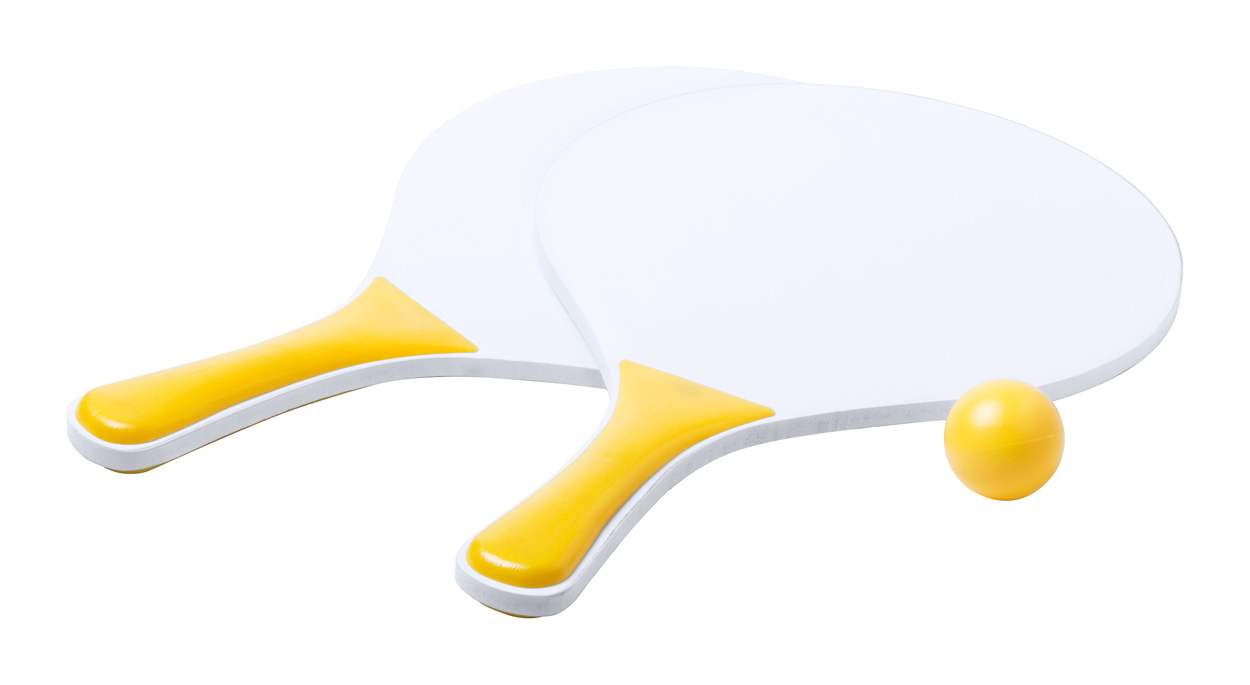Plážový tenis s 2 velkými pálkami a 1 balonkem, vyrobeno ze dřeva a plastu.