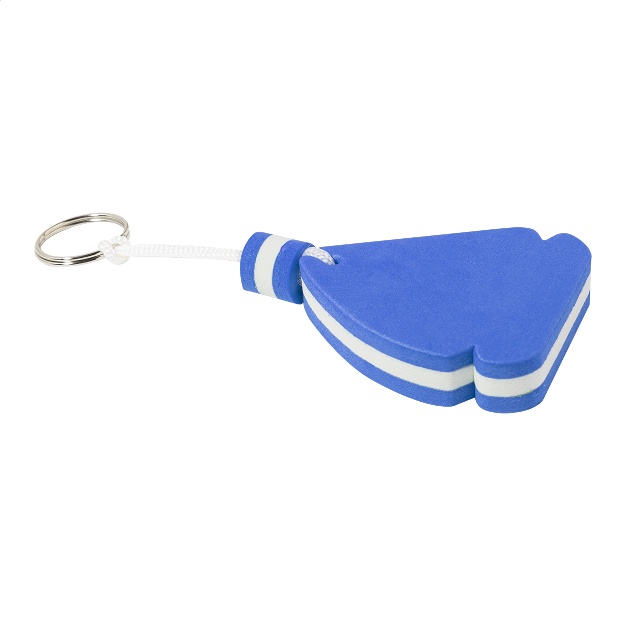 Plovoucí přívěsek na klíče z EVA pěny ve tvaru plachetnice s kovovým kroužkem.